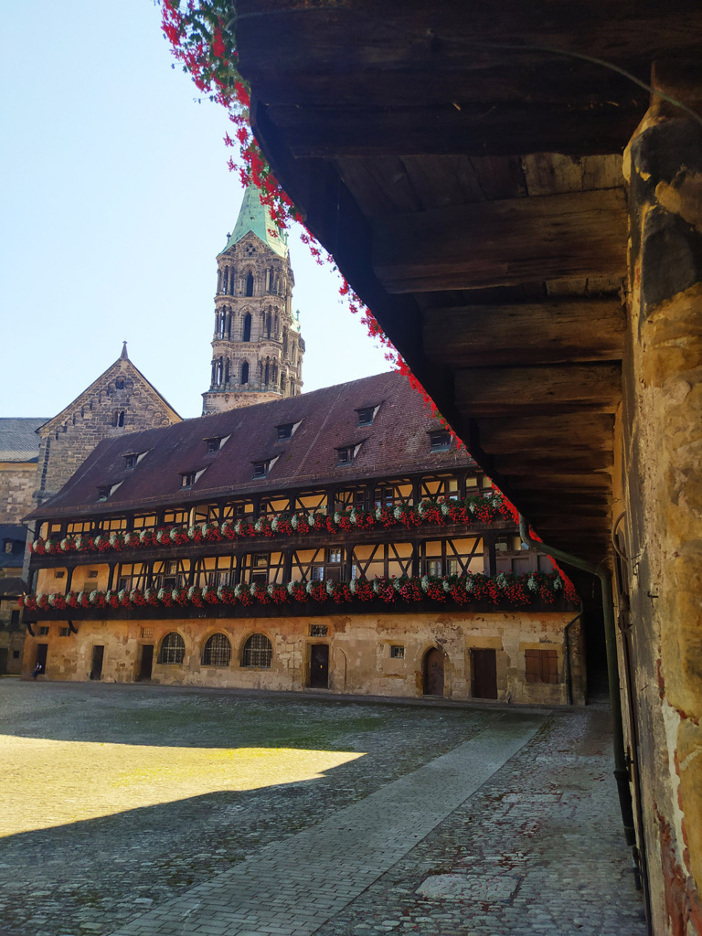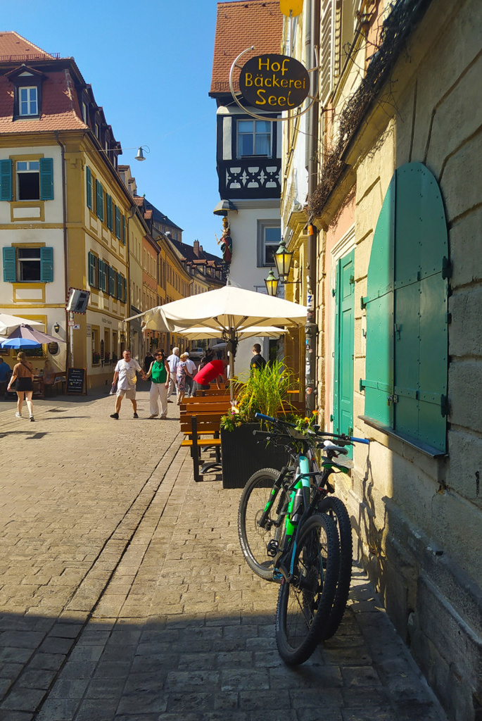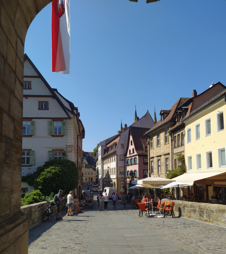 От вокзала до старого города где-то 1,4 км, дошла пешком. Сам городок  один из немногих крупных исторических городов Германии, уцелевших во время Второй мировой войны. В 1993 году исторический центр был включён в список Всемирного наследия ЮНЕСКО, расположен на семи холмах, как Рим, из-за чего его еще называют  немецким Римом, он также является одним из центров пивоварения Баварии, находится в 60 км от Нюрнберга.